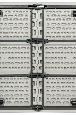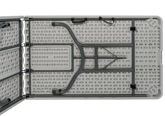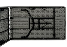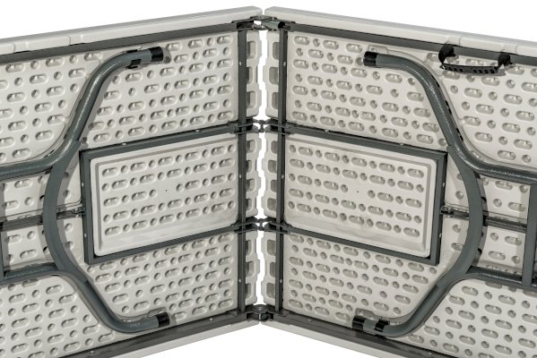 Экземпляр в коллекции эргономичной и комфортной мебели – складной пластиковый стол-книжка 240 см. В сложенном виде модель занимает минимум места, а при необходимости ее можно перевезти в багажнике легкового автомобиля. В собранном состоянии стол обладает внушительными размерами: при длине столешницы в 240 сантиметров за ним с легкостью разместятся как минимум 6 человек. Мебель с такими параметрами рекомендована для крупных выездных мероприятий – в том числе и для тех, где предусмотрен фуршет.