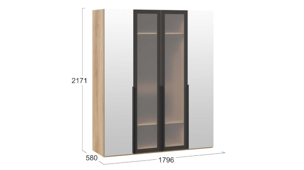 Шкаф для одежды 580 с 2 зеркальными и 2 стеклянными дверями Порто СМ-393.07.115 (ТриЯ)