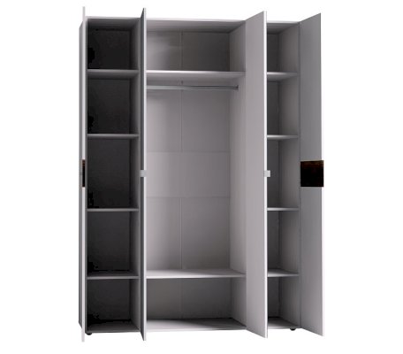 Норвуд 555 - большой четырехдверный вместительный гардероб коллекции Норвуд не оставит равнодушными хозяек, ценящих рациональное использование пространства. Система хранения вещей распашного шкафа включает в себя: отделение с 2 полками и стационарной штангой длиной 777 мм для одежды, ряд регулируемых полок для белья в боковых секциях для белья. Два белых глухих фасада с ручками из массива дерева декорированы вставкой в цвете Орех Шоколадный. Зеркальные фасады с аккуратными металлическими ручками для комфортного открывания. Регулируемые опоры компенсируют неровности пола.
