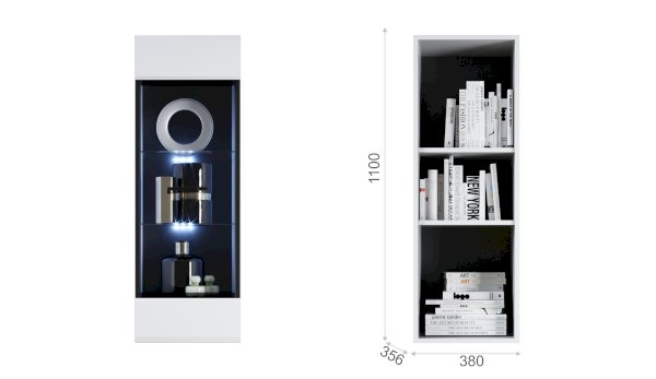 Белые глянцевые фасады МДФ и витрина с прозрачным стеклом сделают Вашу гостиную светлее и уютнее. Задняя стенка пенала-витрины Йорк черного цвета красиво контрастирует с фасадами и корпусом белого цвета. Светодиодная подсветка сделает акцент на дорогих для Вас вещах, таких как фото, статуэтки, сувениры. Регулируемые навесы, которыми оснащен пенал, позволят после подвешивания отрегулировать его положение. Пенал-витрина выполнена из экологически безопасных материалов.