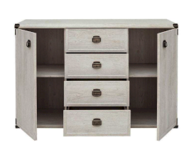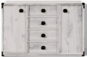 Оригинальный дизайн фасада, точно повторяющий текстуру отполированного дерева отлично впишется в современный интерьер. Дополняет общую композицию необыкновенная форма ручек и закругленные металлические края элементов мебели. В коллекцию Indiana входит большой ассортимент элементов мебели, который поможет создать интересный интерьер в комнате.