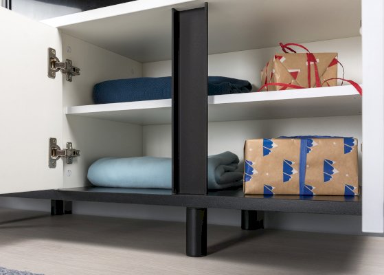 • Распашные фасады на четырехшарнирных петлях.