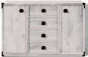 Оригинальный дизайн фасада, точно повторяющий текстуру отполированного дерева отлично впишется в современный интерьер. Дополняет общую композицию необыкновенная форма ручек и закругленные металлические края элементов мебели. В коллекцию Indiana входит большой ассортимент элементов мебели, который поможет создать интересный интерьер в комнате.