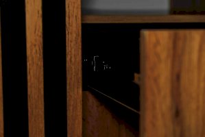 Торцы тумбы сверху и снизу покрыты черной пленкой – выглядят как рамки и подчеркивают границы изделия. Таким образом достигается цветовой контраст, что выглядит очень эффектно!