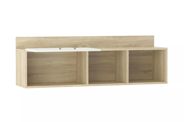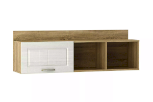 Полка Оливия НМ 011.38-01 Х органично дополнит рабочее место в детской. Закрытая секция модуля подойдет для хранения книг. Газлифты максимально высоко поднимают фасад вверх, обеспечивая большую площадь обзора содержимого. Предметы декора будут хорошо смотреться в открытых секциях полки.