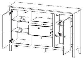 Открытое отделение и 2 выдвижных ящика на металлических направляющих