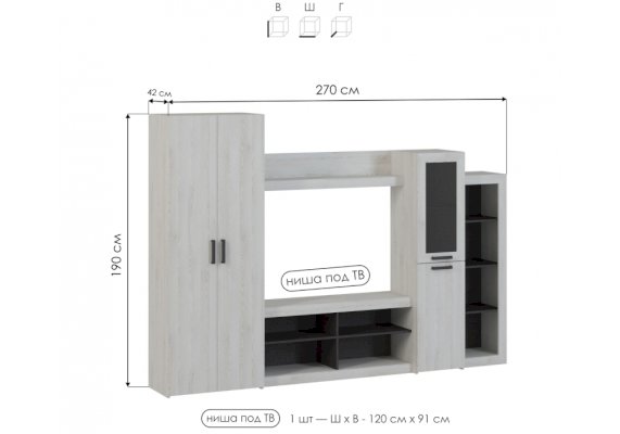 Ниша под ТВ: 120 х 91 см
