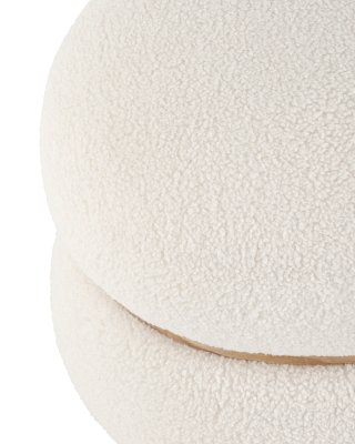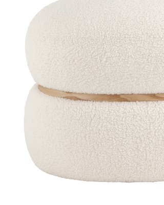 Лаконичный круглый пуф в скандинавском стиле. Мягкая обивка выполнена из искусственного меха тедди - очень мягкий и приятный на ощупь материал. Прочный каркас из фанеры выдерживает на грузку до 150 кг. Вставка по середине из светлого массива дерева гармонично сочетается с белой обивкой.