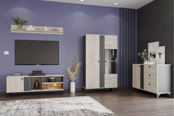 Комбинированный шкаф Отис выполнен в модной цветовой гамме дуба с контрастным антрацитом и отлично впишется в такие интерьеры, как лофт или скандинавский. Строгая геометрия реечных фасадов придает изделию сдержанности и минимализма.
