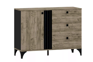 Тумба Отис предназначена для тех, кто ищет необычный дизайн в модной цветовой гамме дуба с контрастным антрацитом. Реечные фасады смотрятся не только лаконично и эффектно, но и по-особенному изящно. Тумба оснащена распашной дверью с двумя отделениями для хранения и тремя ящиками, которые выдвигаются плавно и бесшумно благодаря шариковым направляющим, а высокие опоры обеспечивают легкий и быстрый доступ во время уборки.