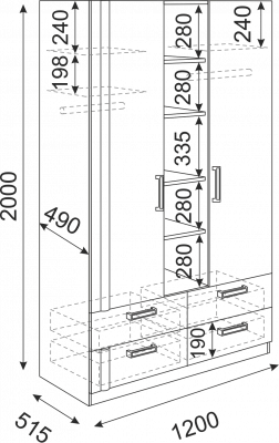 Расстояние между полками: 280 мм