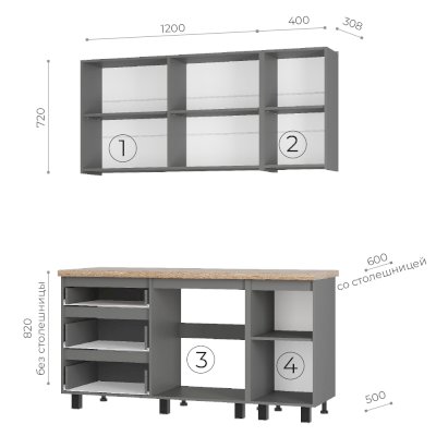 | Цвет нижних фасадов | серый / коричневый / дуб (сонома) / бетон |