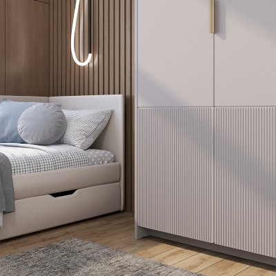 Трехстворчатый шкаф «Пандора» оснащен всеми необходимыми зонами для хранения гардероба: полками для трикотажа и белья, отсеком для вертикального хранения, а также полками для белья и аксессуаров. Трехстворчатый шкаф подойдет для обладателей большого гардероба.