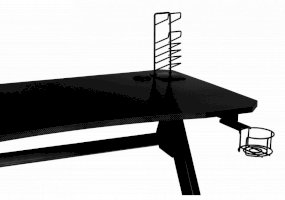 Стол оснащен подстаканником, крючком для наушников и универсальным держателем.