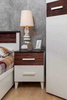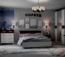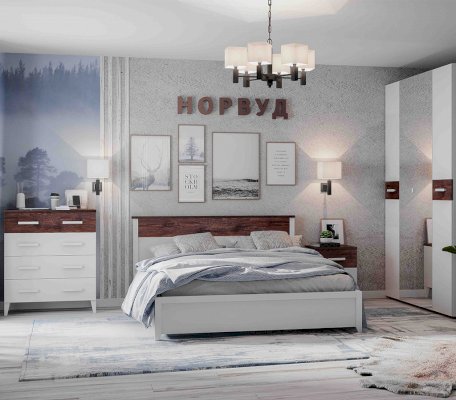 Спальня Норвуд - фаворит среди любителей классики в современном исполнении. Декор, сочетание белого с орехом шоколадным, делает мебель стильной, а помещение - светлым и визуально просторным. Коллекция представлена базовым набором модулей комбинируя которые между собой, Вы сможете создать уютную и функциональную спальню. Вместительные шкафы со стеклянными дверцами, комфортабельные кровати размером от 140 до 180 см в ширину, прикроватная тумба на ножках, широкий комод и туалетный столик-трансформер позволят Вам грамотно обустроить спальную зону и хранить все Ваши вещи, занимая при этом минимум места.