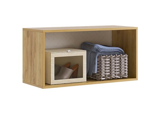 Еще одно интерьерное решение, антресоль может быть консолью. Перевернув фасады и закрепив антресоль на небольшой высоте от пола, Вы получаете стильную и функциональную тумбу для хранения парящую в воздухе. Это удобное решение, если у Вас дома есть робот-пылесос.