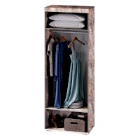 Организовать хранение в современном интерьере можно с помощью стильного двухстворчатого шкафа Инстайл. Модель полностью выполнена из ЛДСП из комбинации двух цветов – серый и белый. Две распашные створки дополнены геометрическими удлиненными ручками. Внутреннее наполнение состоит из двух ниш для необходимых вещей и отделения с хромированной штангой для одежды на вешалках.