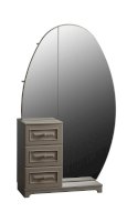 Трюмо: Корпус – ЛДСП 16 мм Фасады – МДФ с пленкой ПВХ и патиной Кромка – ПВХ 0,4 мм Направляющие – шариковые Зеркало – 4 мм Ручки – фарфоровые Опоры – пятниковые Декор – кисти для штор