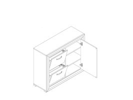 • Слева: 2-е откидные двери, в которых расположены однорядные кассеты для обуви;