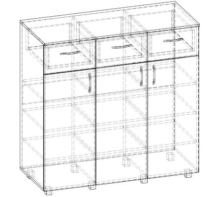 Данное изображение представлено в следующих цветах ЛДСП: корпус - Ясень Шимо тёмный, фасады - Ясень Шимо светлый.