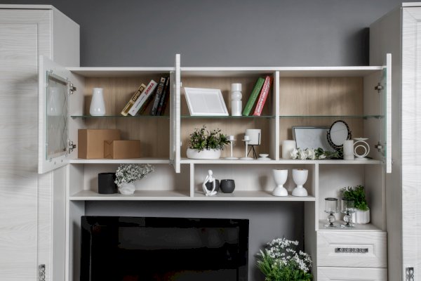 Помимо привлекательного дизайна, тумба под ТВ может похвастаться отличной функциональностью. Она имеет два вместительных ящика и два маленьких, открытые ниши под тв аппаратуру и полки под декор. Дверки со стеклом с пескоструйным рисунком добавляют модели легкость. Таким образом, тумба под ТВ при достаточно компактных размерах имеет множество мест для хранения. Это идеальный вариант для небольших гостиных.