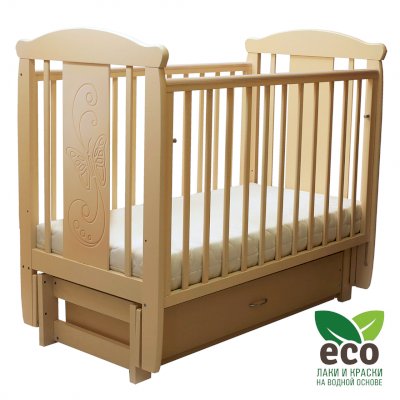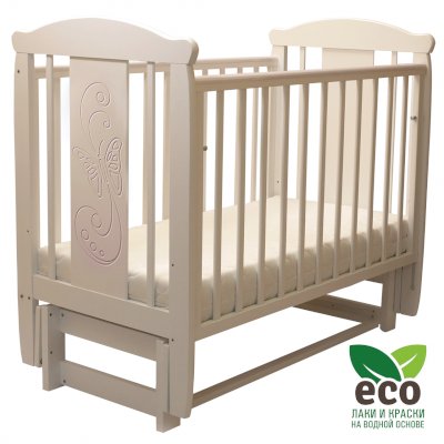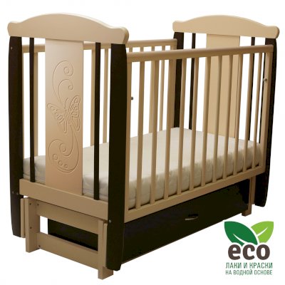 варианты цветовых решений Кроватка "Соня 05" имеет механизм качания продольный маятник. Механизм качания фиксируется. Возможен вариант кровати с ящиком.