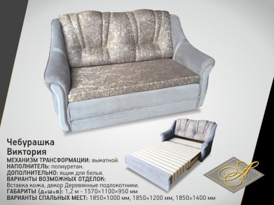 Диван Чебурашка Виктория 1,2 (Асм) - за 29 737 руб. в Донецке. Купите на сайте doneck.onlinemarketmebeli.ru или по телефону 8(800)505-30-63 уже сегодня! Уточнить наличие, комплектацию, актуальную цену можно бесплатно у менеджера ежедневно. Закажите Диван Чебурашка Виктория 1,2 (Асм) до конца акции! Доступна покупка в кредит, рассрочку. Доставим со склада или на заказ.