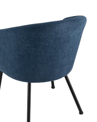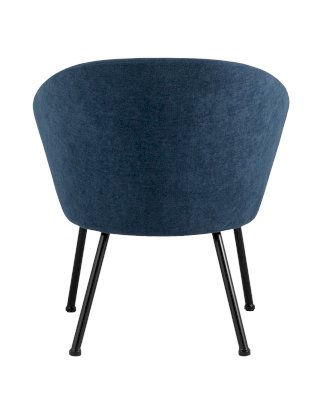 Широкая спинка плавно переходит в удобные подлокотники высотой 69,5 см от пола. Для дополнительного комфорта в кресле есть мягкое плотное сиденье. В качестве обивки используется ткань шенилл, плотный износостойкий материал с бархатистой структурой, приятный на ощупь. Металлический каркас добавляет устойчивости и выдерживает нагрузку до 120 кг. Ножки металлические черные.