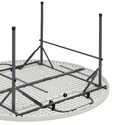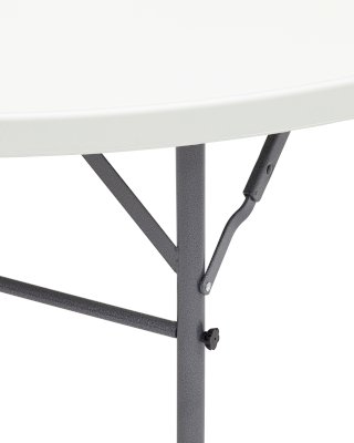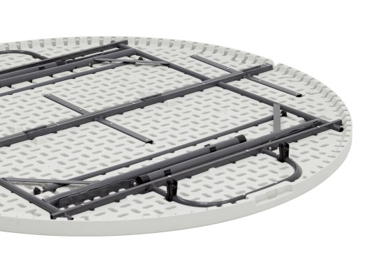 Стол круглый. Для каркаса используется стальная труба особой прочности 32*1 мм, а столешница, толщиной 5 см, выполнена из 100% не переработанного полиэтилена HDPE (полиэтилен высокой плотности). Считается одним из более безопасных видов пластика. HDPE пластик выдерживает высокие нагрузки, не трескается при ударной нагрузке, эластичен в диапазоне температур от –70 до +100 °С.