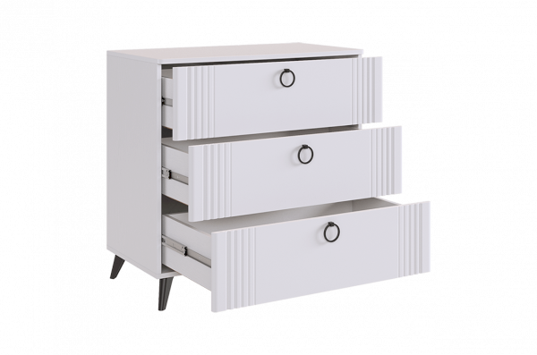 Комод "Ева" идеально сочетает в себе стиль и функциональность. С его размерами 800х428х736 мм он будет отличным дополнением к любому интерьеру. Корпус комода выполнен из ЛДСП в белом деревянном цвете, а фасады - из МДФ, облицованного пленкой ПВХ белого матового цвета. Смело можно сказать, что комод выглядит элегантно. Он оснащен тремя просторными ящиками на шариковых направляющих, что обеспечивает плавное и бесшумное скольжение. Удобные ручки-кнопки добавляют комоду элегантности и обеспечивают удобство использования. Также комод имеет бесшумную систему закрытия фасадов, что делает его идеальным выбором для спален или детских комнат. Пластиковые черные опоры высотой 120 мм придают комоду устойчивость и добавляют удобство уборки. Комод "Ева" - это не просто место для хранения, это изысканный акцент в интерьере вашего дома, который радует своей красотой и функциональностью на протяжении многих лет. Он создает атмосферу уюта и комфорта, идеально сочетаясь с любыми элементами интерьера и придавая вашему дому неповторимый шарм и элегантность.