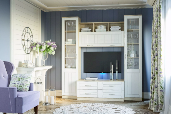 Шкаф Оливия НМ 040.43 Х не займет много места в гостиной. Шкаф со стеклом понравится тем, кто хочет добавить больше света в пространство гостиной. Внутри модуля на пяти полках можно разместить большое количество вещей.