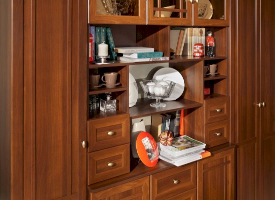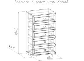 Широкий выбор модулей коллекции SHERLOCK помогает создать уютную гостиную с комфортным рабочим местом, что очень важно для маленькой квартиры. Вместительный 15 Стол письменный можно расположить между шкафами и навесить над ним 4 Шкаф навесной на любой удобной для Вас высоте. 5 Тумба МЦН – отличный вариант не только для хранения вещей, но и для размещения на ней телевизора. Шариковые направляющие тумбы обеспечивают плавность хода выдвижных ящиков. Большой выбор шкафов коллекции SHERLOCK дополнит и то, что 10 Шкаф угловой можно выбрать либо с фасадом Стандарт, либо с фасадом Зеркало. Все фасады модулей коллекции декорированы классическим переплетом из МДФ.