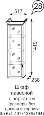 Шкаф навесной с зеркалом №28 Венеция (Ижмебель)