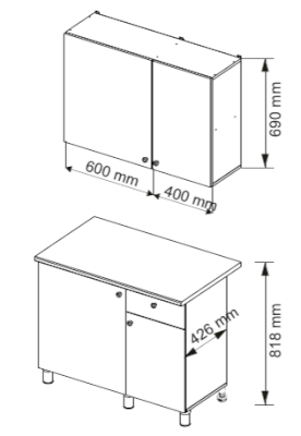 Высота верхних шкафов, мм 690
