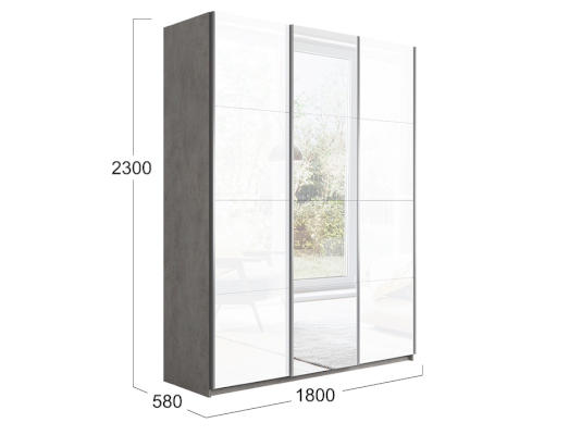 Трехдверный шкаф-купе с 1 зеркалом и стеклом Траст 1800 (Трия)