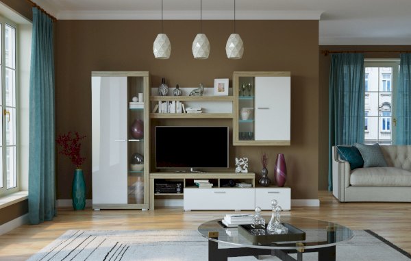 Дуб Сонома/Белый глянец