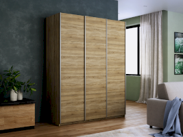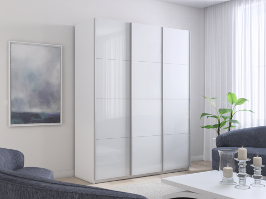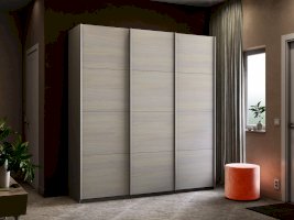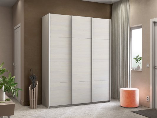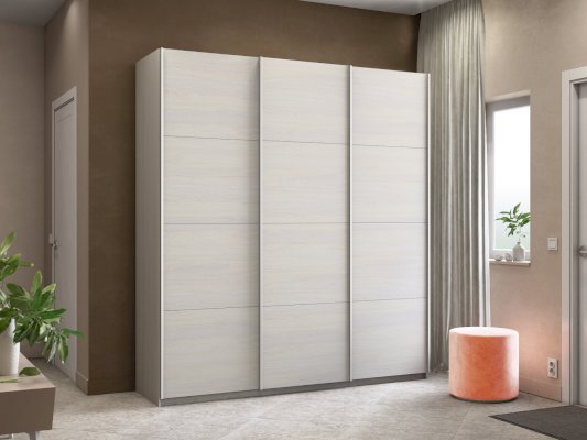 Серия «Прайм» отличается доступностью и функциональностью Навесные двери и лаконичная отделка фасадов создают прогрессивный дизайн. Подойдет тем, кто любит компактную и изящную мебель. Алюминиевые ручки и верхний ходовой профиль обеспечивают легкость и прочность конструкции. Многолетняя безупречная работа благодаря высококачественной немецкой фурнитуре Hettich. Прочная ПВХ-кромка толщиной до 1 мм защищает края от сколов и повреждений. Плавный ход дверей обеспечивает надежная система Hettich Top Line M. Дополнительно можно установить доводчики. Снаружи нет заглушек и винтов благодаря стяжечной системе крепления полок на флипперах, а корпус усилен эксцентриковыми стяжками. Навесные двери скрывают раздвижной механизм от глаз. Они надежно удерживаются в направляющих и не соскакивают. Каждая дверь поделена на 4 секции Секции расставляются в произвольном порядке, создавая новый дизайн фасада.