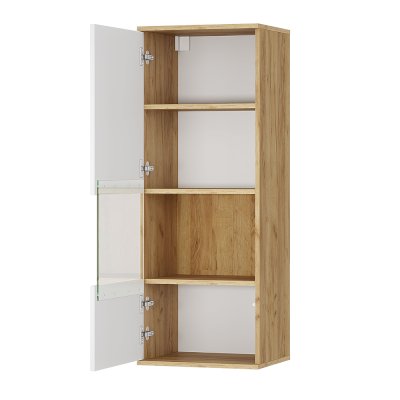 Компактный, но вместительный навесной шкаф из коллекции «Тиволи» - это лучшее решение для вашей гостиной и прихожей. Стильная стеклянная вставка добавляет модели изюминки и дает возможность организовать на одной из полок хранение красивых вещиц или аксессуаров. Створка открывается при помощи магнитного отталкивателя фасадов.