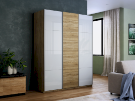 Серия «Прайм» отличается доступностью и функциональностью Навесные двери и лаконичная отделка фасадов создают прогрессивный дизайн. Подойдет тем, кто любит компактную и изящную мебель. Алюминиевые ручки и верхний ходовой профиль обеспечивают легкость и прочность конструкции. Многолетняя безупречная работа благодаря высококачественной немецкой фурнитуре Hettich. Прочная ПВХ-кромка толщиной до 1 мм защищает края от сколов и повреждений. Плавный ход дверей обеспечивает надежная система Hettich Top Line M. Дополнительно можно установить доводчики. Снаружи нет заглушек и винтов благодаря стяжечной системе крепления полок на флипперах, а корпус усилен эксцентриковыми стяжками. Навесные двери скрывают раздвижной механизм от глаз. Они надежно удерживаются в направляющих и не соскакивают. Каждая дверь поделена на 4 секции Секции расставляются в произвольном порядке, создавая новый дизайн фасада.