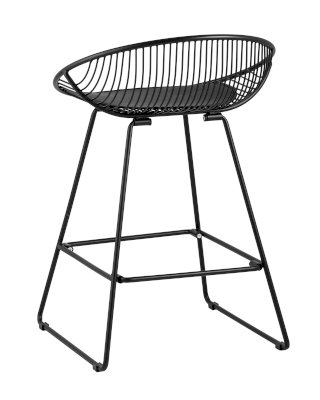 Необычный дизайн барного стула UFO станет акцентом интерьера кухни в современном стиле. Спинка и сидение выполнены из металлических прутьев черного цвета. Подушка изготовлена из черной экокожи. Ножки выполнены из металла в тон сидения и имеют подставки, которые предотвращают скольжение стула по поверхности пола.