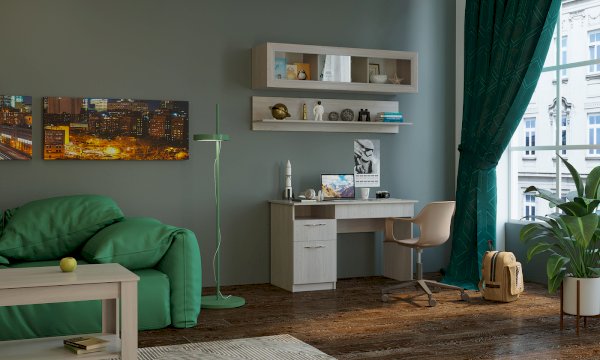 Возможность установки дополнительных опций в предметы хранения: шкаф и пенал можно дооборудовать полками и перегородкой с полками.