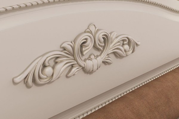 Кровать выполнена в актуальном цвете джелато, который располагает к спокойствию и уюту, а также оснащена основанием, которое обеспечит здоровый и крепкий сон. Спинки кровати украшены объемным декоративным элементом и фрезеровкой с патиной.