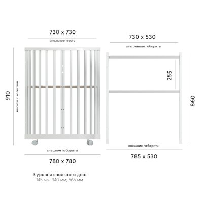 - люльки: габаритный размер 78х78 см, размер спального ложа 73х73 см