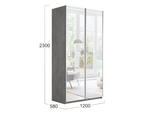 Двухдверный шкаф-купе с 2 зеркалами Траст 1200 (Трия)