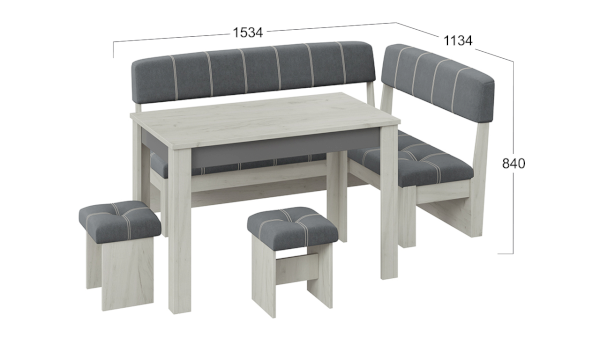 Размеры скамьи: 1534х1134х840 мм
