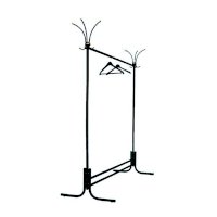 Вешалка выполнена из оцинкованной стали с полимерным покрытием. Крючки вешалки выполнены из трубы диаметром 10 мм. Вешалка поставляется в разобранном виде, в картонной таре. Эта модель вешалки может использоваться как фрагмент для обустройства гардеробных комнат.