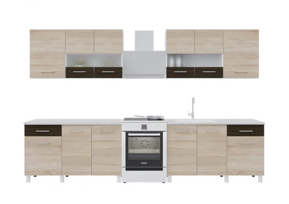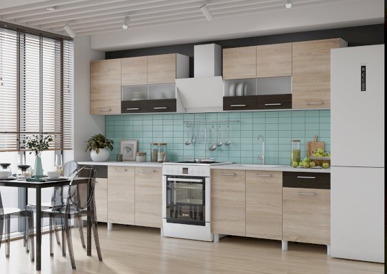 Объединяя два набора, размер кухни можно увеличивать и получать TREND 2600, суммируя наборы. Все кухни собираются в зеркальном исполнении.