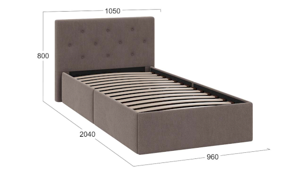 Важной особенностью является то, что все детали и фурнитура кровати укладываются в изголовье и упаковываются в одну коробку, что делает её компактной и легкой для транспортировки.