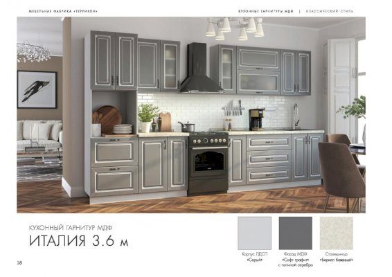 Модульный кухонный гарнитур Италия софт графит с патиной серебро (Террикон) - за 83 298 руб. в Донецке. Купите на сайте doneck.onlinemarketmebeli.ru или по телефону 8(800)505-30-63 уже сегодня! Уточнить наличие, комплектацию, актуальную цену можно бесплатно у менеджера ежедневно. Закажите Модульный кухонный гарнитур Италия софт графит с патиной серебро (Террикон) до конца акции! Доступна покупка в кредит, рассрочку. Доставим со склада или на заказ.