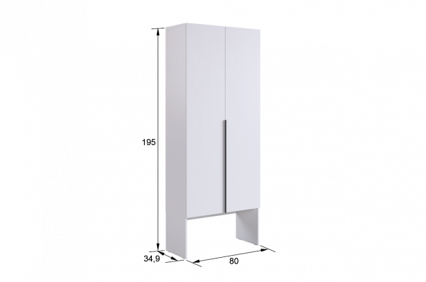 Изготовленный из высококачественного ЛДСП толщиной 16 мм, шкаф гарантирует прочность и долговечность. Длинные пластиковые ручки добавляют современный акцент и удобство в использовании.